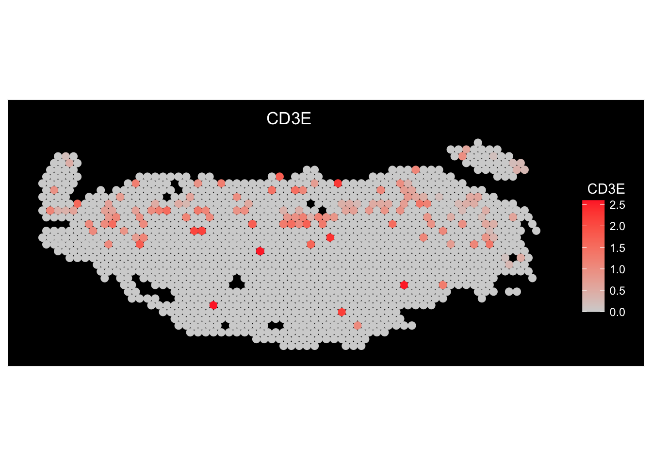We can view the gene expression on the UMAP itself.